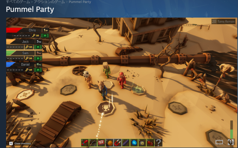 ゲームはマリオパーティって感じ。すごろくを振って目的地を目指して、毎ターンミニゲームがあり、コイン=鍵とスター=ゴブレットを集めるゲーム。普通にパーティゲームとして面白くてマリオパーティの味変ってイメージ。値段はフルプライスではないので、マリオパーティよりみんなでやる敷居が低めかもしれない。