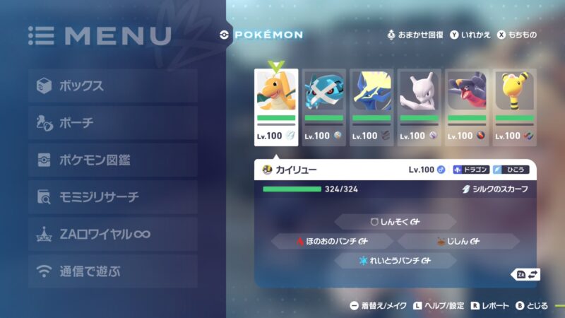 飴を使ったりしてとりあえずPTメンバーを揃えた。進めてる感じ相手ポケモンのlvが高くて強いので、わざわざ揃える価値があったなと感じた。一撃を狙うゲームじゃないので好きでいれたデンリュウは要らなかったかもしれない。