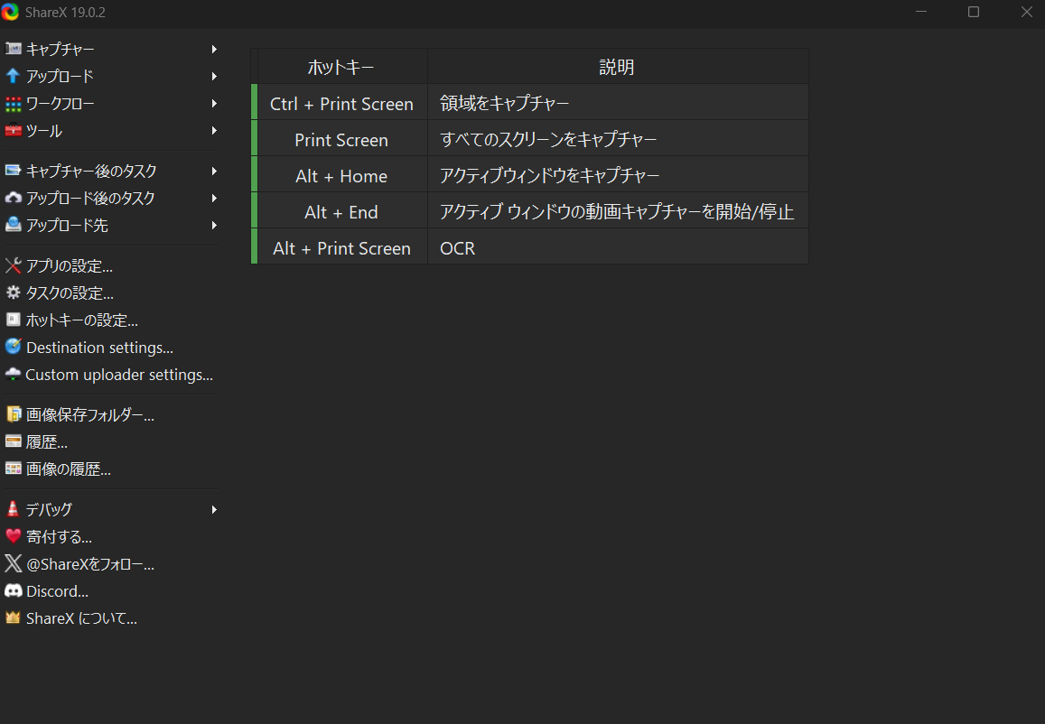 で、調べて出てきたのがShareXというソフト。なんか新しさとかはないけどシンプルで使いやすそう。